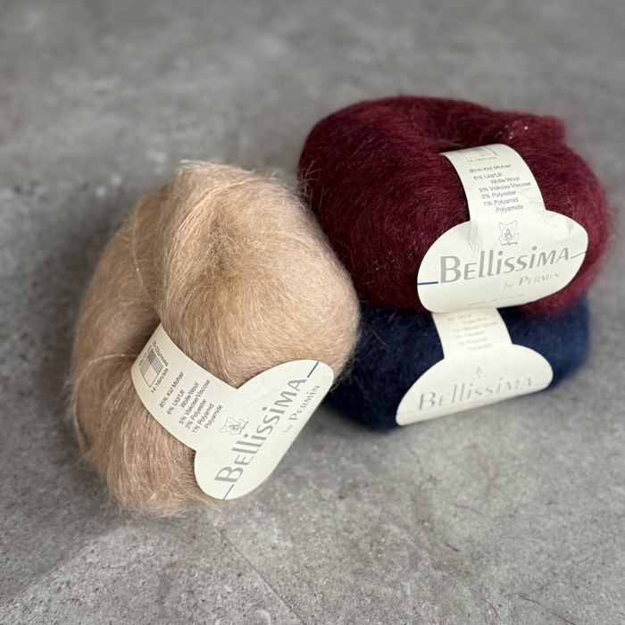 Lækkert blødt Bellissima garn fra Permin. Garnet har en lille smule glimmer i. Brug garnet til bluser, cardiganmed et festligt glimt.