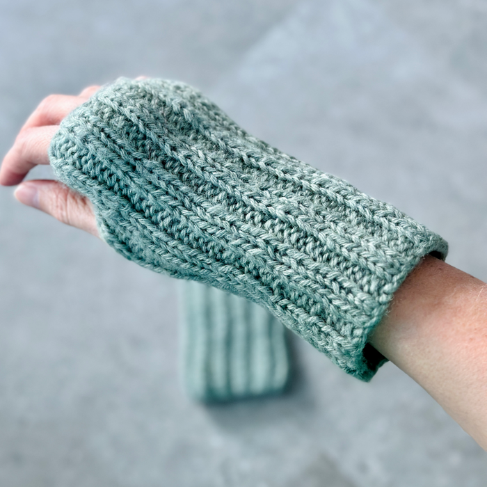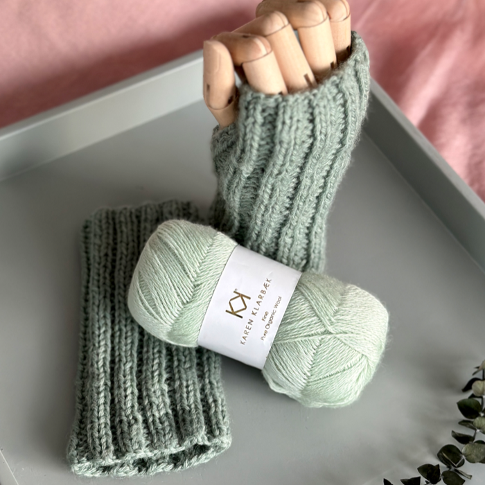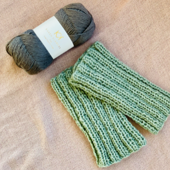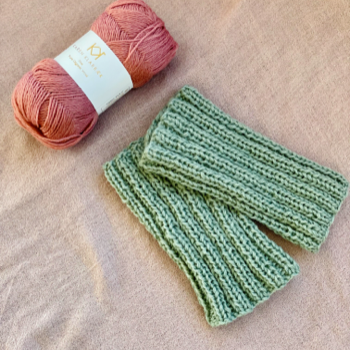 Det er nemt at lave disse helt enkle P&G håndledsvarmere/fingerløse vanter fra Pind & garn. De strikkes frem og tilbage på rundpind og sys sammen i siden til sidst.