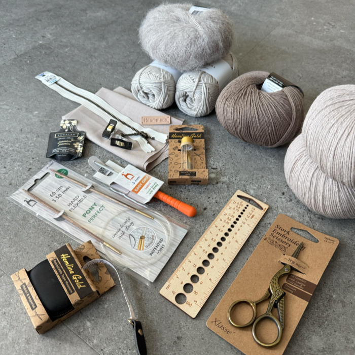 Lær at strikke med P&G - et kursus til dig, der vil lære at strikke. I denne pakke får du både kursus og en tilbehørpakke, vælg selv hvilken størrelse tilbehør pakke du vil lære at strikke med.