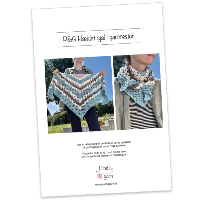 - Opskrift på hæklet sjal i garnrester, som sendes digitalt.