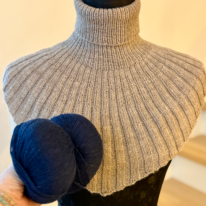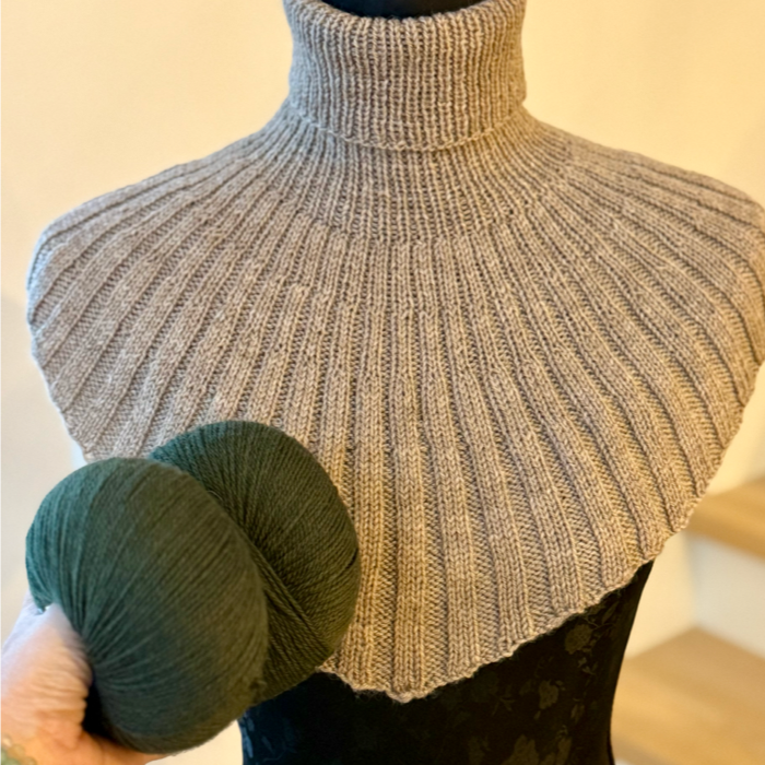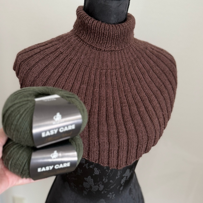 Strikkekit med garn og opskrift på vores første klassiske halsedisse opskrift strikket i Easy Care merino, super blød kvalitet der falder rigtig fint og holder godt.