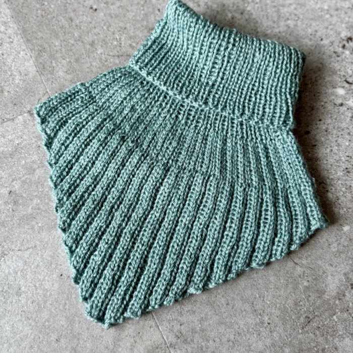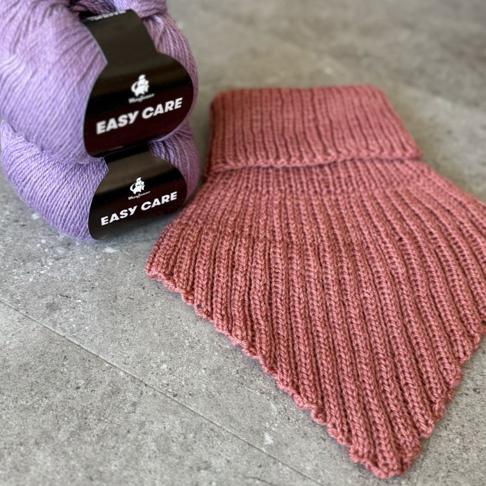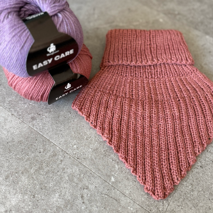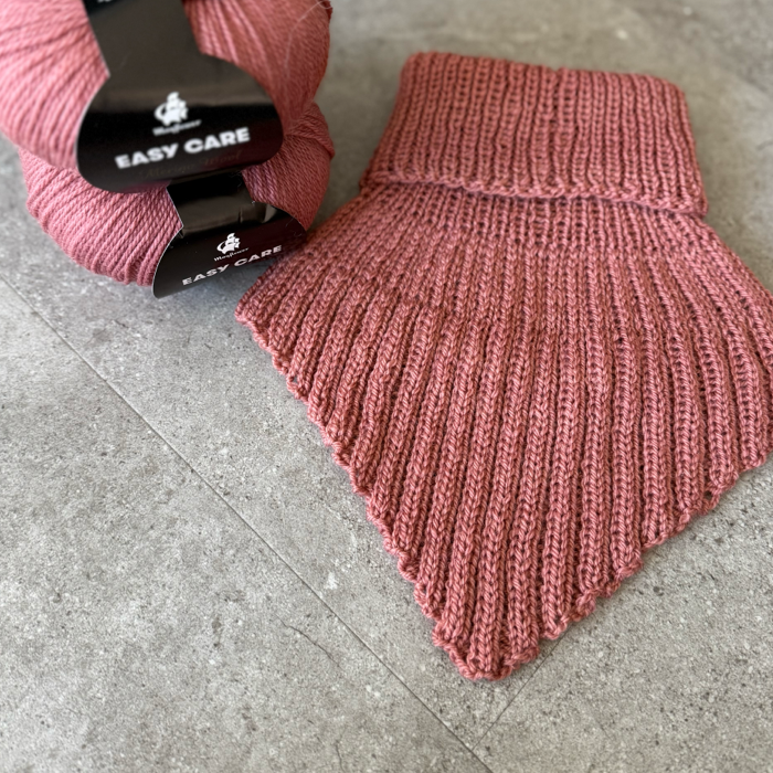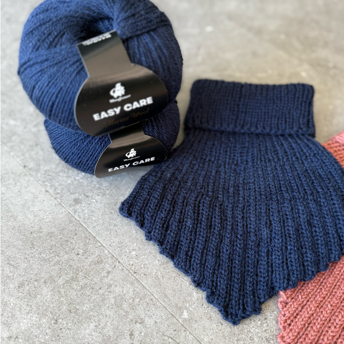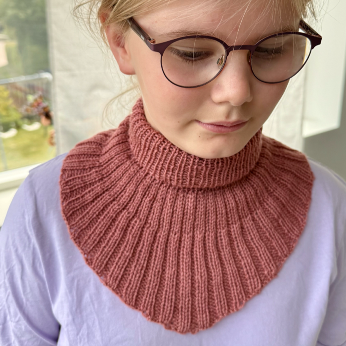 Strikket i det bløde Easy Care merino, super blød kvalitet. Halsedissen er strikket oppefra og ned, den er strikket rundt og lavet længere foran, hvor den danner en fin spids. Der er forslag til 2 længder i opskriften, og du kan strikke 2 halsedisse til et barn ud af kittet.
