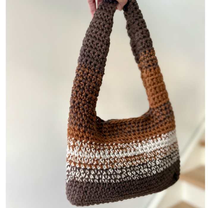 Hækl en lækker og nem skuldertaske i det bløde 8/8 bomuld fra Karen Klarbæk.