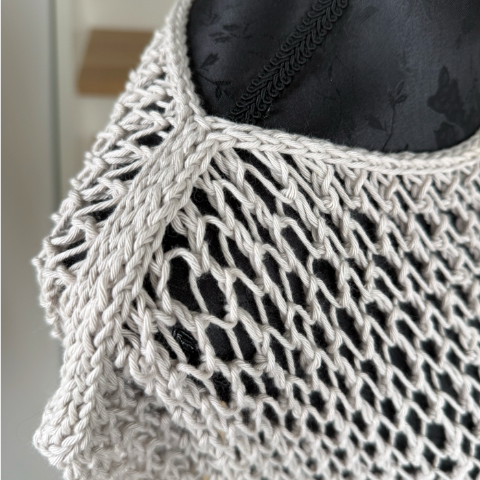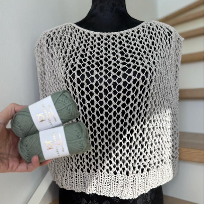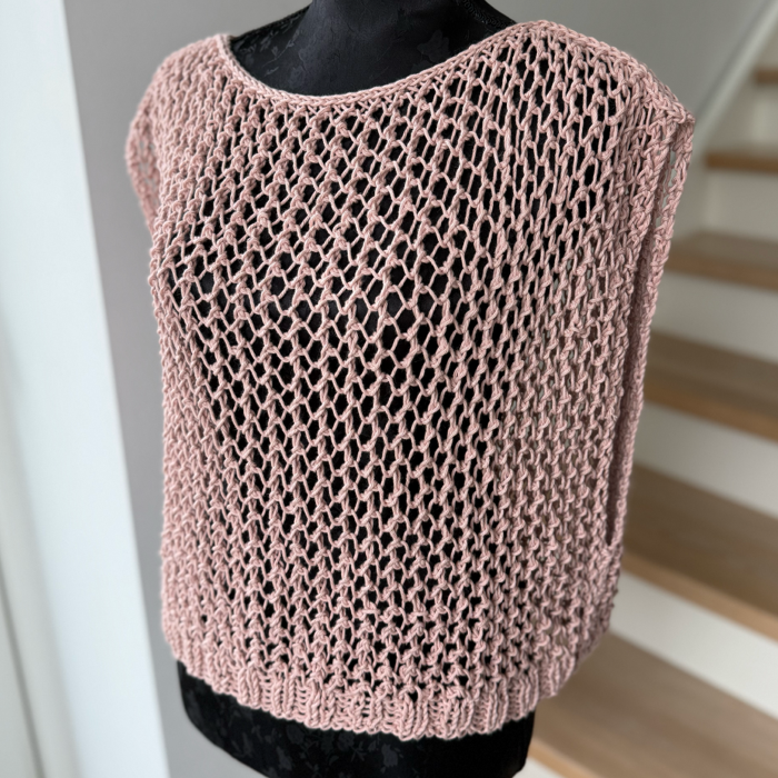 Sommerbluse med hulmønster strikket i 8/8 bomuld fra Karen Klarbæk, det blødeste bomulds garn. Passer perfekt i sommer varmen - til hverdag og fest, men kan også bruges forår og efterår over en langærmet bluse eller en kjole.