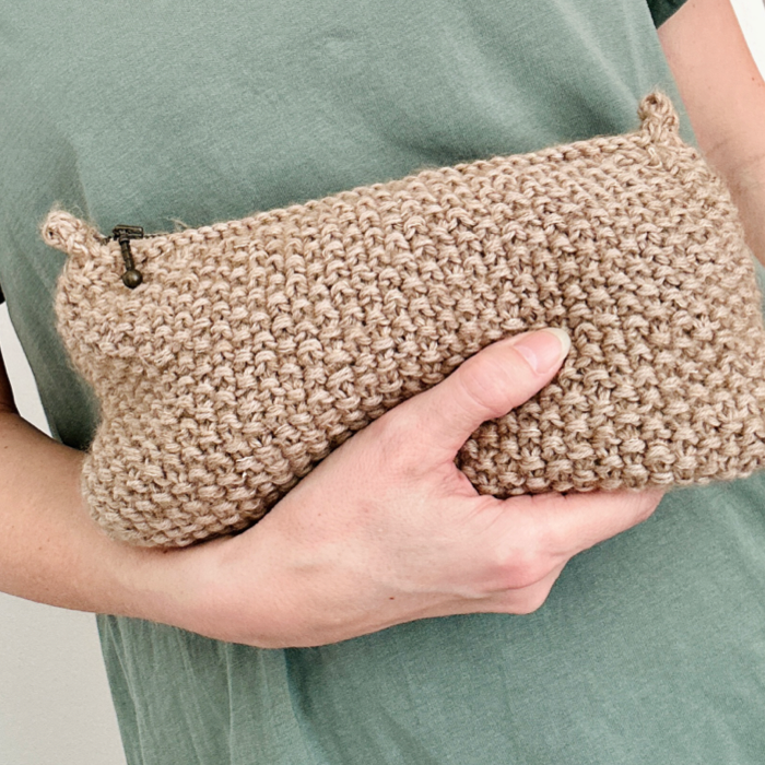 Super lækker perlestrikket clutch - opskriften er lavet så den kan bruges både med og uden kæde og der er 2 forslag til mønster: perlestrik og dobbelt perlestrik, så man vælger selv.